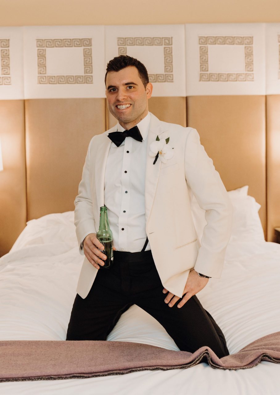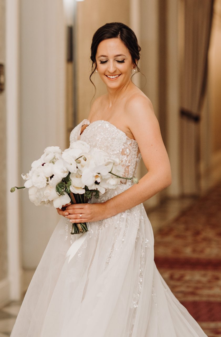 Get ready to be swept off your feet by Adrienne and Kenny’s enchanting winter New Year’s Eve wedding at the Hotel Monaco in Washington, DC. Picture a setting where sophistication meets whimsy, where black and white hues take center stage, and where delicate blooms of baby’s breath, anemones and other white flowers weave their magic. Trust us when we say, a winter New Year’s Eve wedding, with its black and white color scheme, is an absolute dream come true. It’s a celebration that merges elegance with playfulness, tradition with modernity, and creates memories that will last a lifetime.
