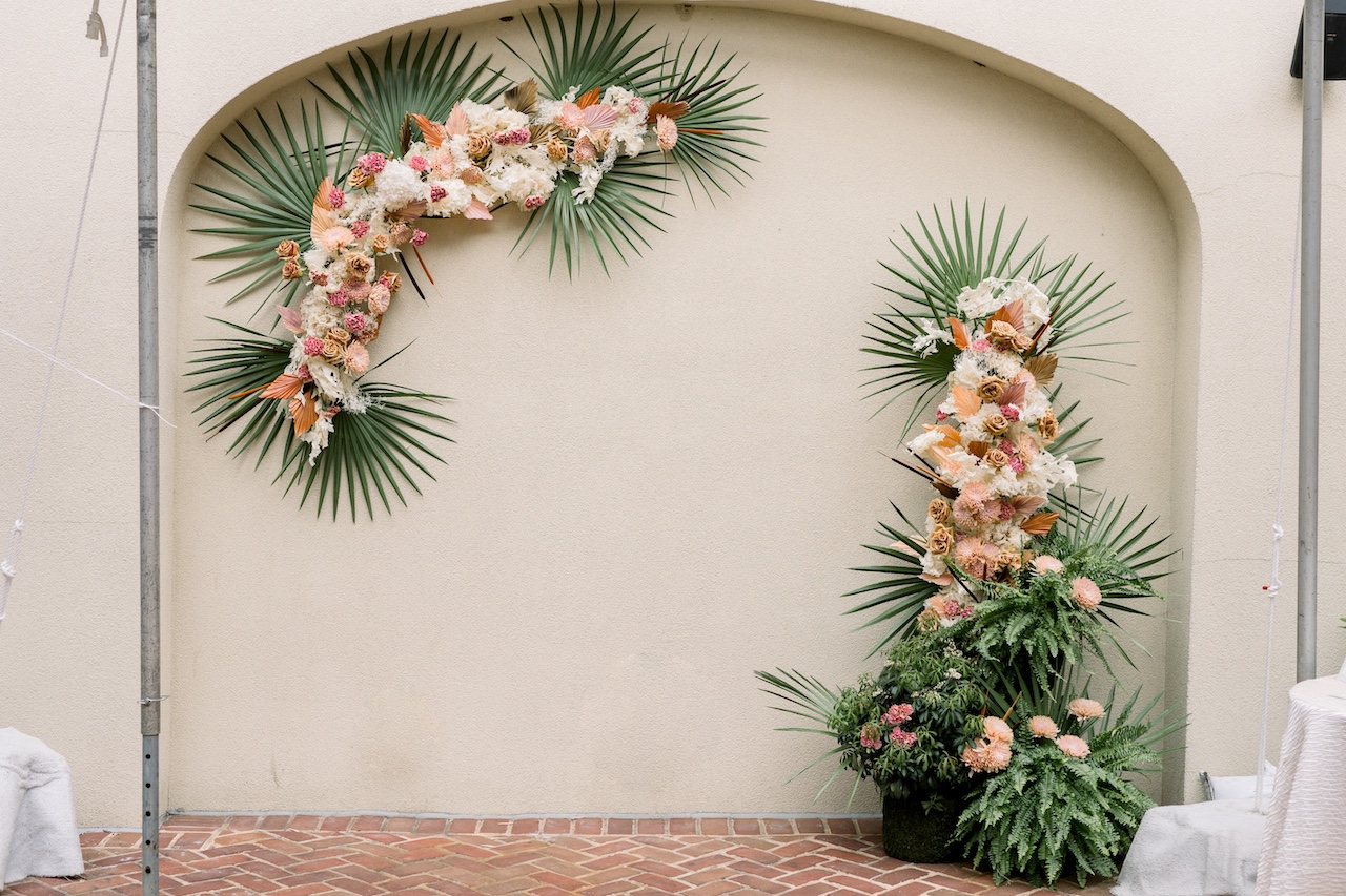 Ceremony Backdrops & Aisles: Create stunning installations with dried palm leaves, pampas grass, vines, and blooms. Line your aisle with low arrangements of dried grasses and flowers for an organic feel.